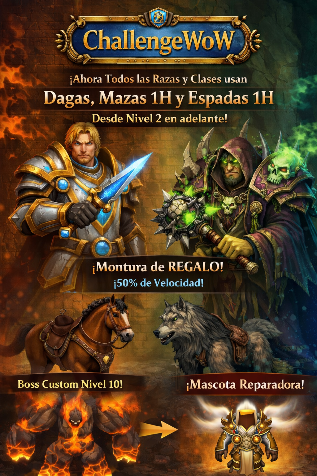 Un servidor 3.3.5a con dificultad aumentada, lista para los más veteranos y conocedores del juego.
