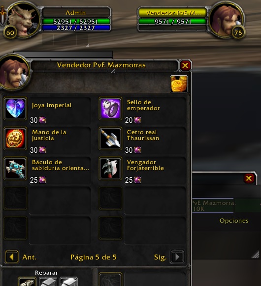 Con el parche podrán ver correctamente los precios y los items nuevos como los tabardos custom o el set de Farmeo para poder equiparlo clickeando solamente, repararlo e incluso encantarlo.